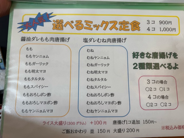 山盛り唐揚げ定食にしてみようかな♪