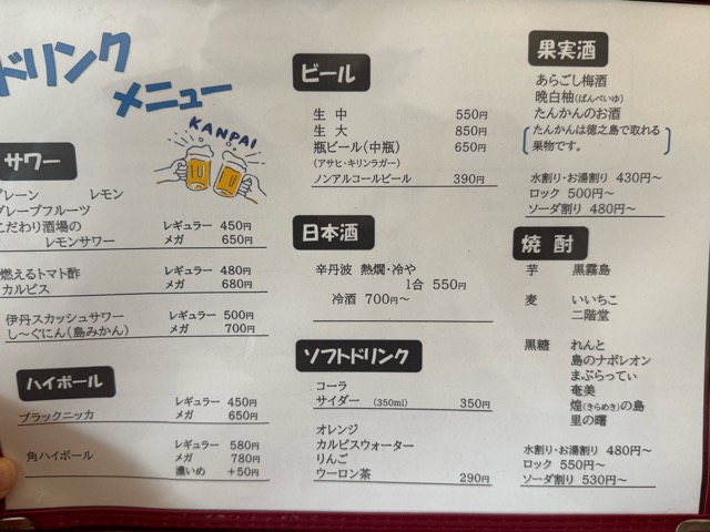 ドリンクメニューと